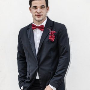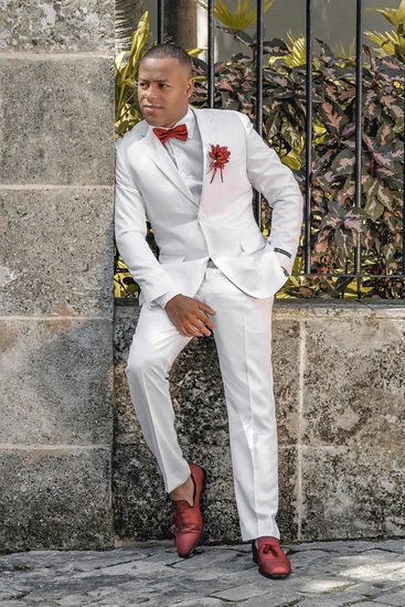 Traje blanco hueso corte slim fit.