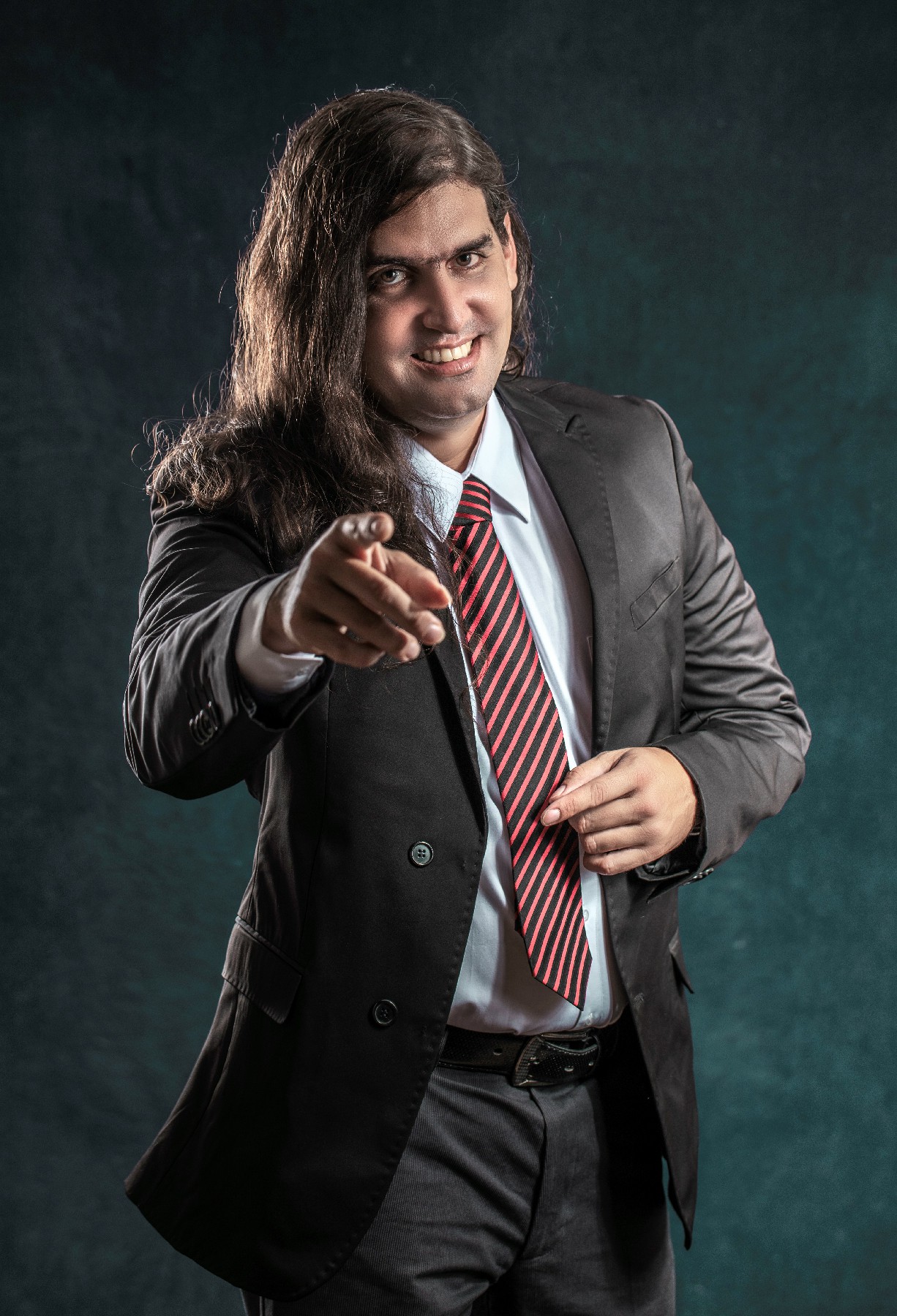 Traje negro clásico.