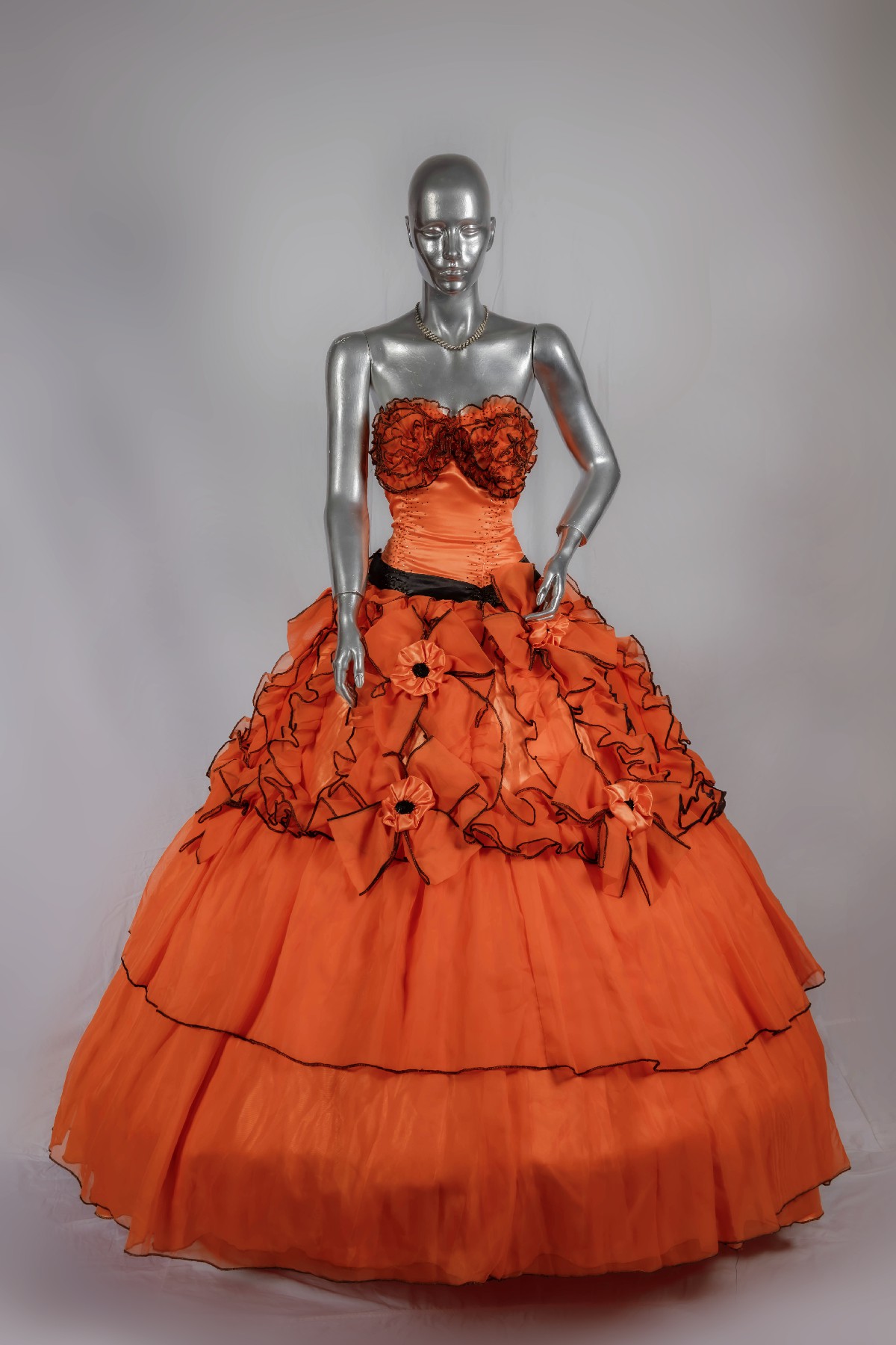 Traje de quinceañera corte princesa naranja