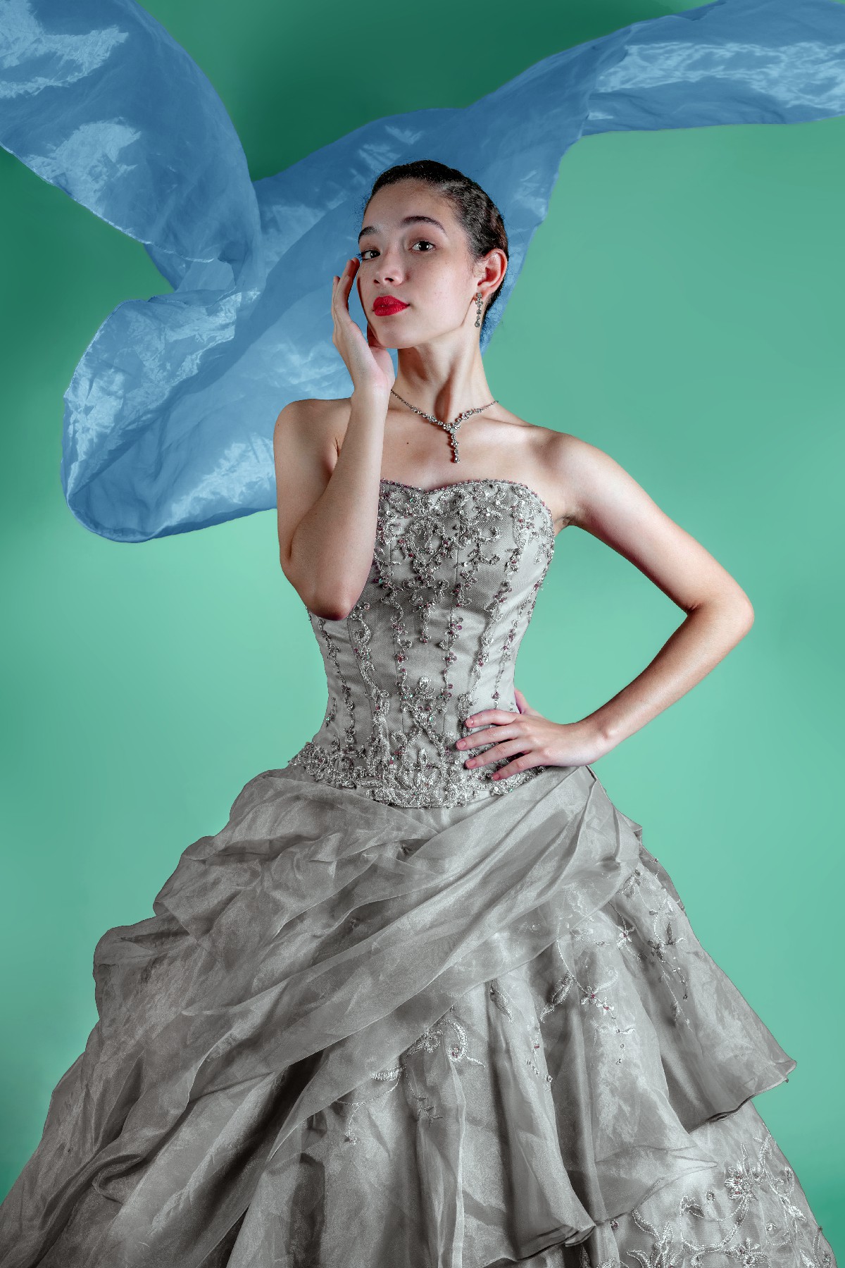 Traje de quinceañera gris