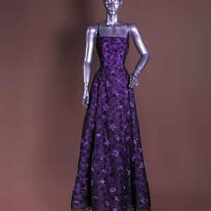 vestido morado con motivos florales