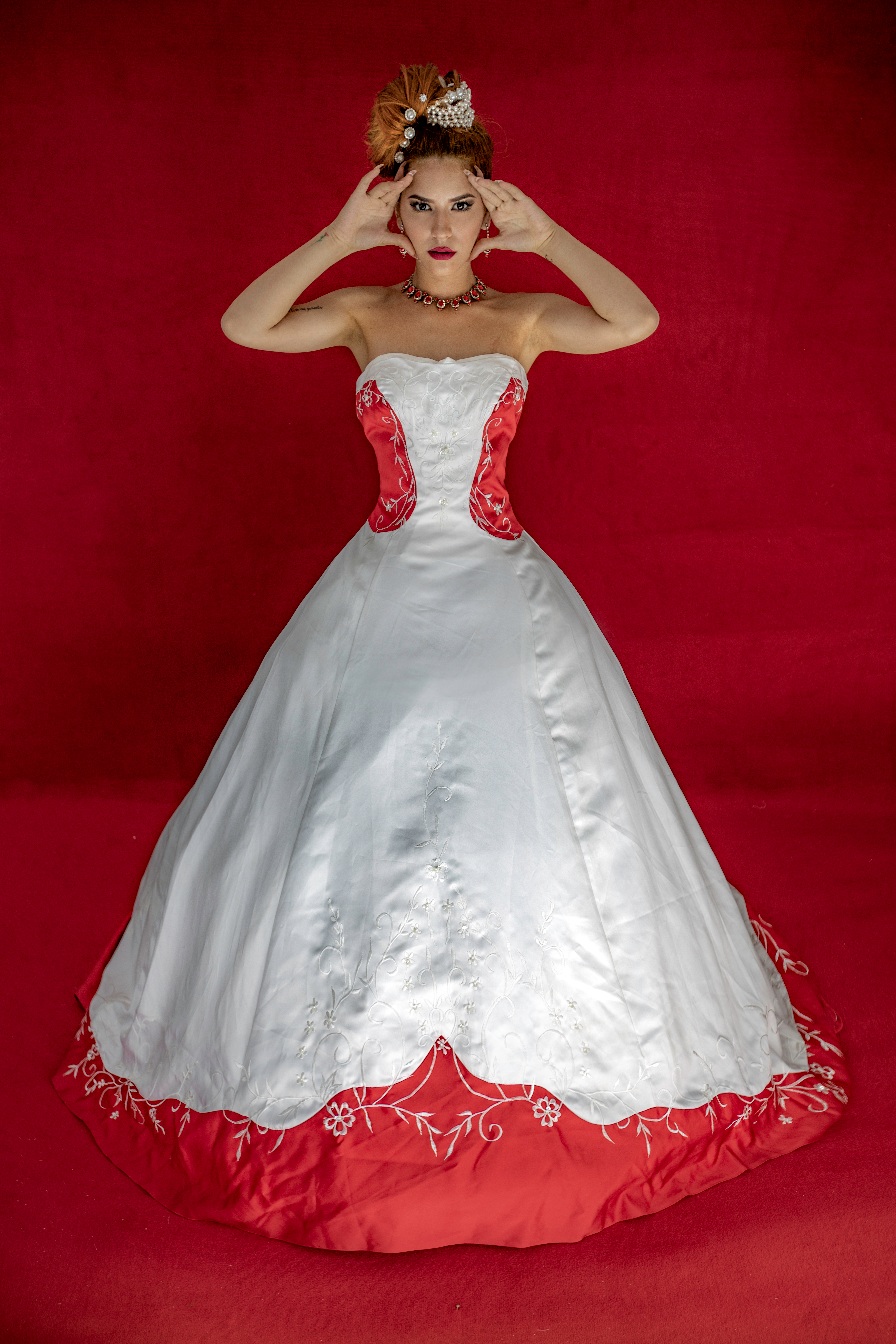 / Vestido blanco y rojo corte princesa