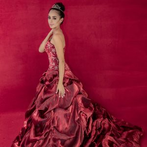 Vestido rojo escarlata vaporoso corte princesa