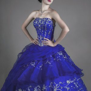 Traje de quinceañera corte princesa azul oscuro