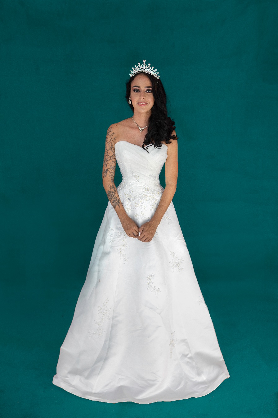 Vestido de novia 3 piezas satinado con bordados