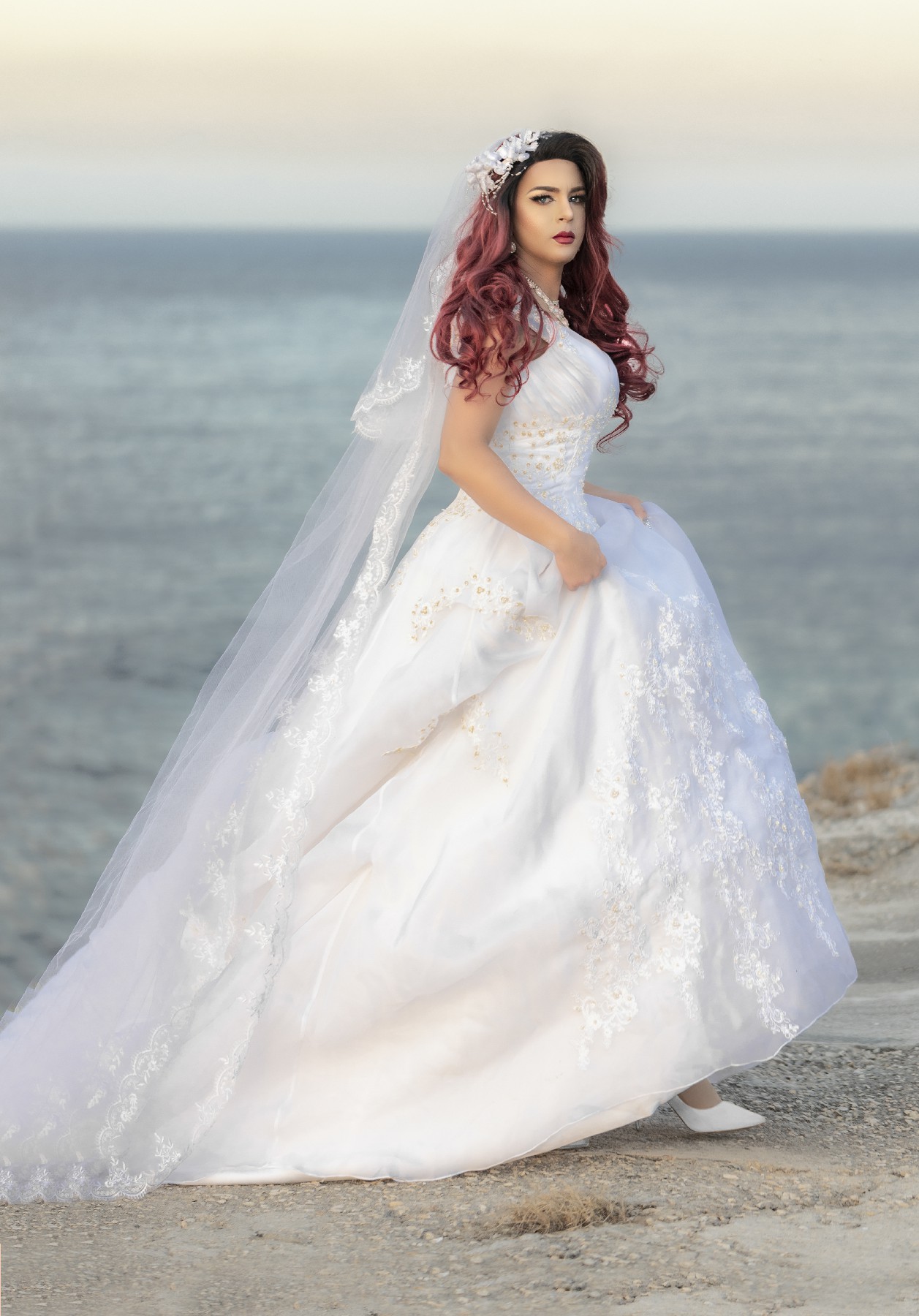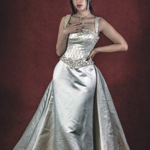 Vestido de Novia color marfil de cola larga escote corazon
