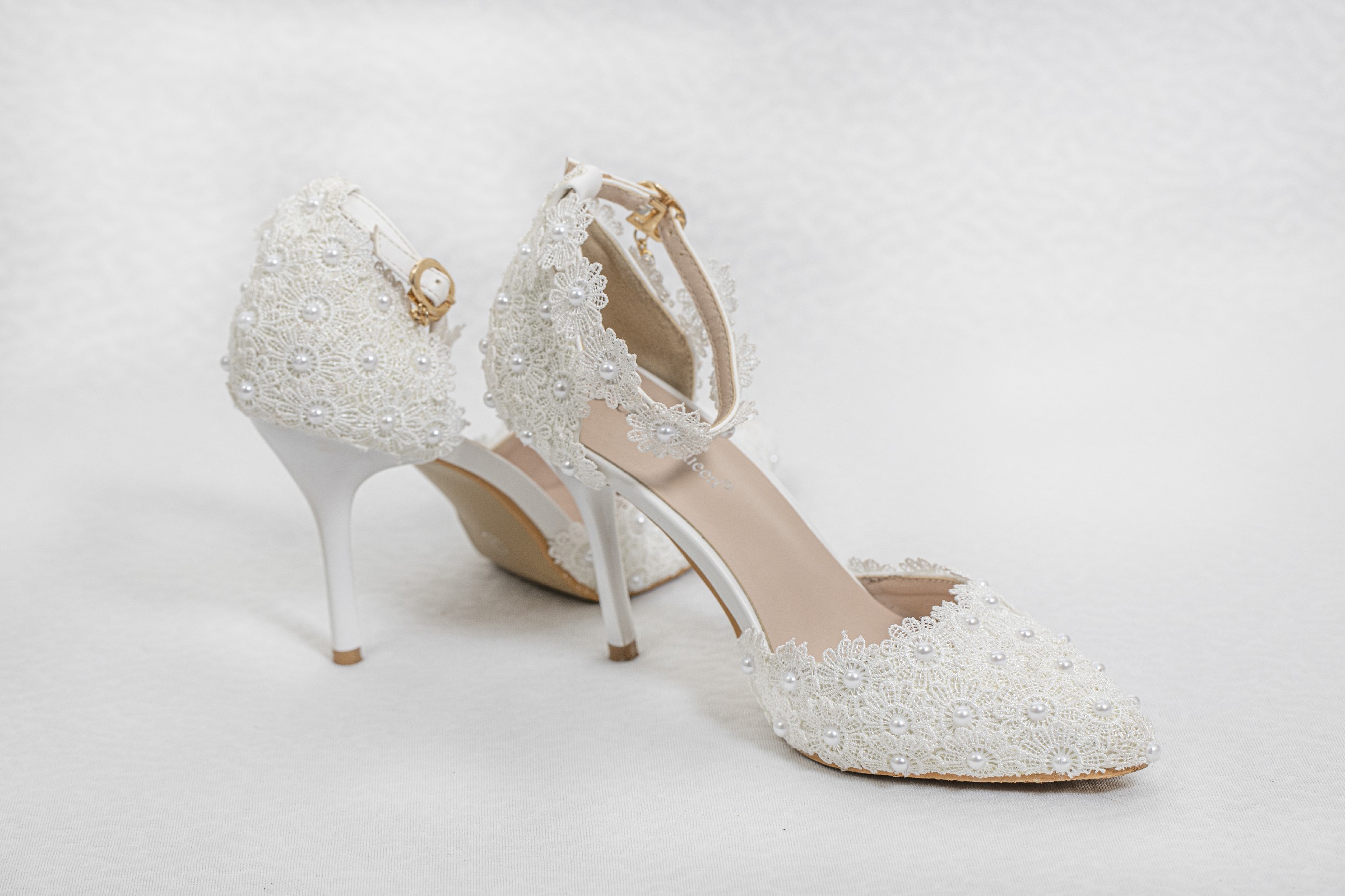 / Zapatos de novia de encaje blanco y perlas